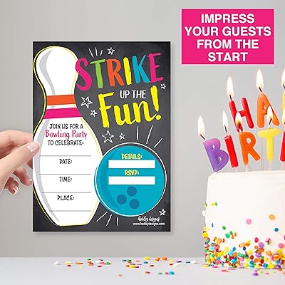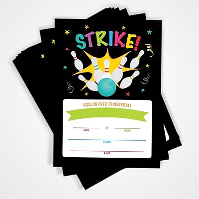 Bowling party invitations, 4 x 6 inch, 8 count inviting your family and friends will be a piece of cake with these bowling party invitations.